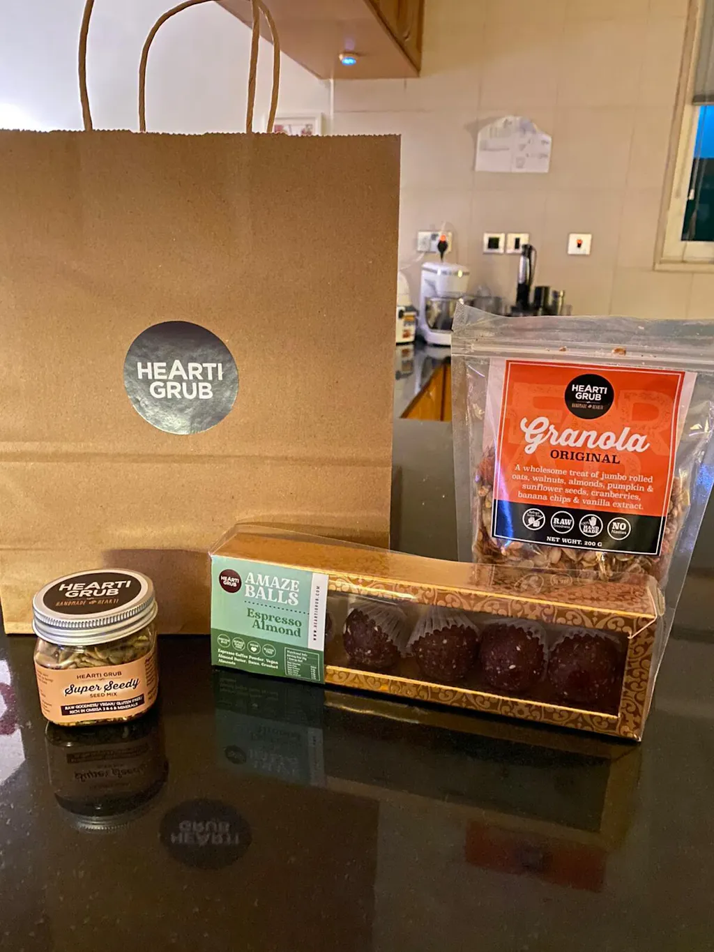 The shopping experience was very easy , the delivery was on the same day which was amazing . The Granola was delicious and I loved the espresso almond balls. Will be definitely ordering again . Thanks :)